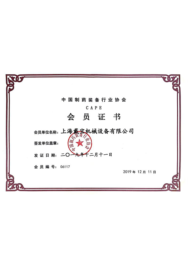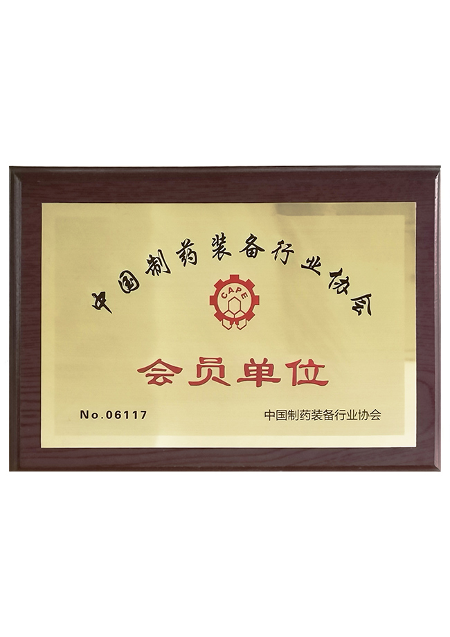 中國制藥裝備行業協會會員證書