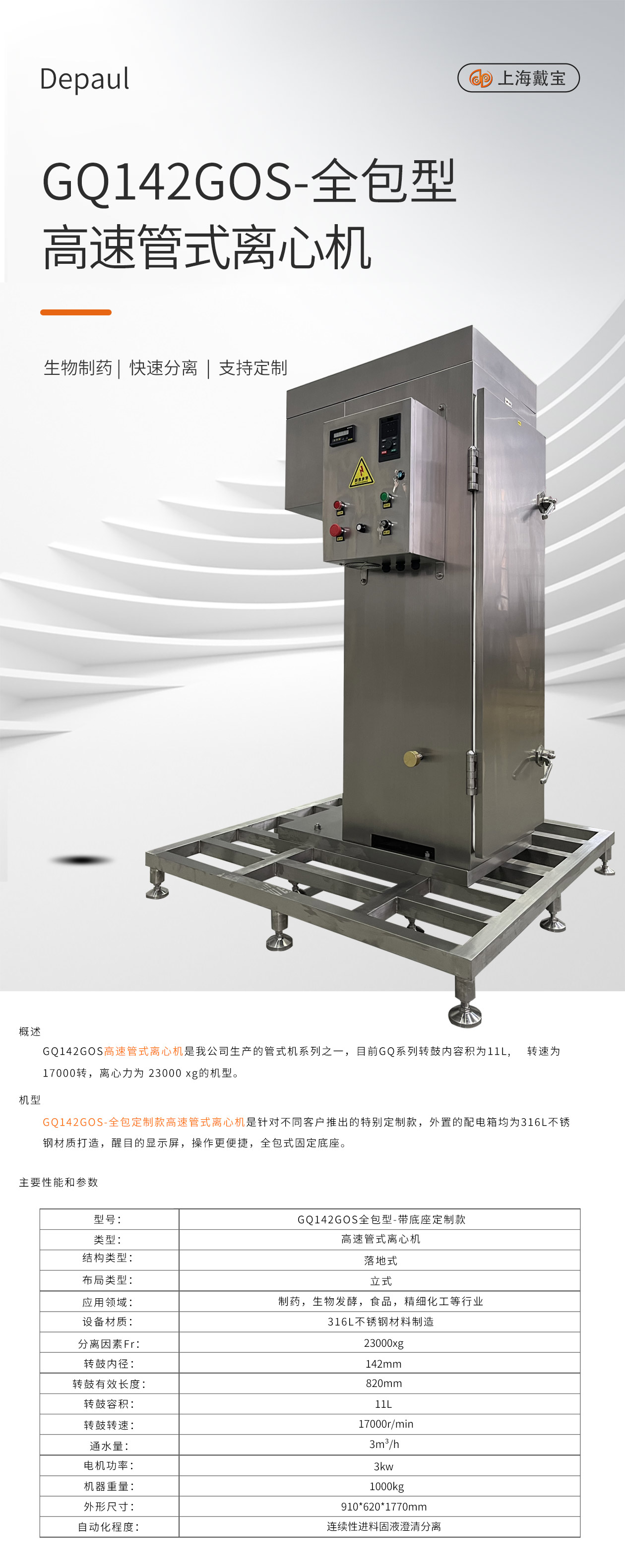 GQ142GOS管式離心機-全包底座定制款